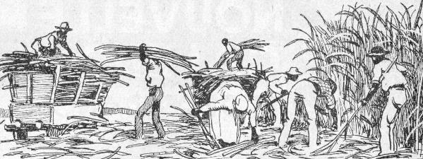 Pour planter il a fallu le labourage avec la houe.... La coupe a necessité le coutelas... Enfin les cannes à sucre pourront être chargées dans les charettes...