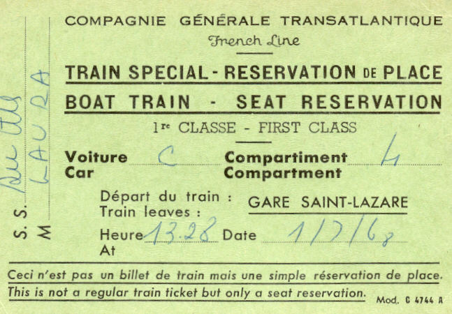 C'était le moyen le plus fréquent car moins onéreux et le plus agréable si on n'était pas pressé car il fallait partir de la gare Saint-Lazare, par le train-paquebot (ces trains desservaient les gares maritimes, en correspondance avec les paquebots des lignes transatlantiques)