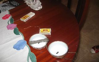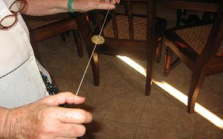 au milieu du fil après lui avoir imposé un mouvement circulaire... On notera que la mise en mouvement nécessite dextérité et