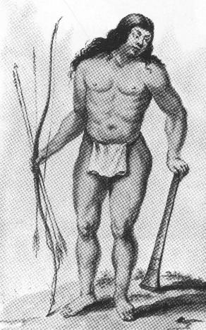 HOMME (celui-ci tient un arc, des flèches et un boutou. ) |