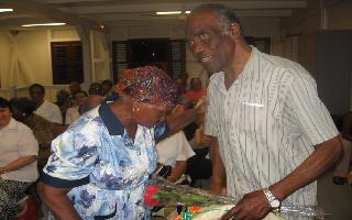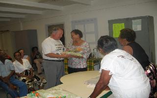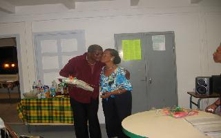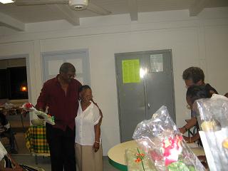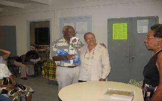 Accompagné par les chants de Josettte chacun, chacune de ces retraités recevra son bouquet et son cadeau...