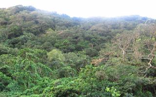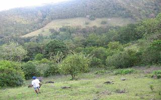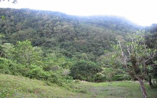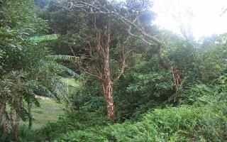 A gauche la propriété s'étend avec ses bois en haut du morne...