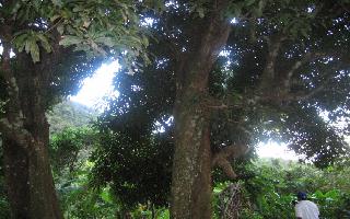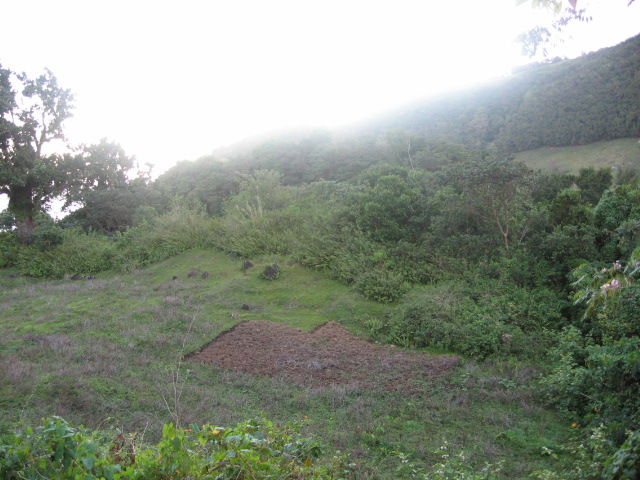 On retrouvera devant nous les deux vieux manguiers et les restes du poulailler qui avait été construit et peuplé de volailles par papa (Augustin Laura)...