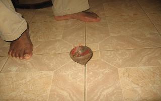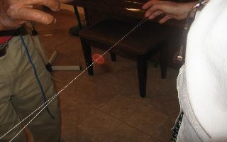 au milieu du fil après lui avoir imposé un mouvement circulaire... On notera que la mise en mouvement nécessite dextérité et