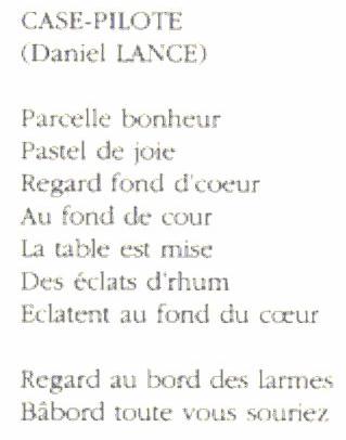 Peut-être apprendrez-vous les paroles de la chanson qu'il voue à Case-Pilote (comme l'avait fait avant lui Anderson Bagoé) et qu'il a enregistré avec Daniel Lance.