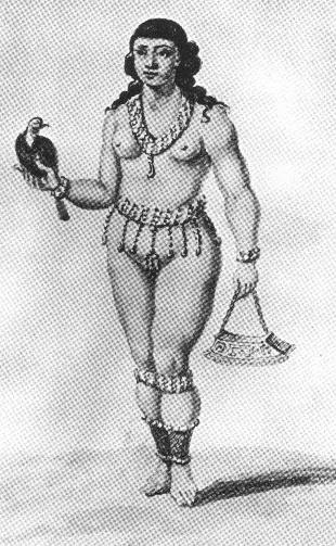 | FEMME (celle-ci tient un perroquet et un panier.) |