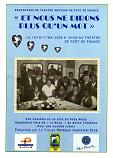 inspiré de "La noce" d'Anton Tchékhov s'inscrit lui aussi dans une perspective d'ouverture au monde à partir d'un lieu repérable, parce que parfaitement identifié et assumé : la Martinique. La scènographie, superbe n'a rien a envié à ce que font certaines troupes professionnelles. La scène est occupée par une vaste table, à la décoration parfaitement soignée, autour de laquelle vont se déplacer, parfois lourdement, souvent gauchement les convives dans des tenues recherchées. Mais ce n'est pas là l'essentiel. Nady Nelzy s'inscrit dans la ligne de ce que Jean-René Lemoine le metteur en scène haïtien internationalement reconnu, avait déjà suggéré avec "La cerisaie" et que nous avions eu la chance de voir à l'Atrium il ya deux ans, à savoir un parallèle, osé et somme toute loin d'être gratuit entre la situation de la Russie à la fin du 19ème siècle et celle de la Martinique tout juste sortie de l'esclavage. Il y a là comme une mise à distance, une mise en relation, un recul qui permet de mieux voir, ou de voir autrement ce qu'a été notre histoire ou tout au moins celle de la petite bourgeoisie mulâtre. Une façon de rire de nous sans que ce soit tout à fait nous. Il y a un vrai travail de réflexion sur les modes d'expression théâtrale de l'ambivalence, quelle soit sociale, économique, matrimoniale, ethnique d'une classe située dans un entre-deux. Le parti pris scénographique, cette table imposante, limite l'espace de jeu de comédiens forcément imparfaits et eux-mêmes participent, de ce fait, à cette limitation de l'expression scénique d'une approche intéressante en soit. Mais encore une fois, le moment passé n'était pas désagréable, loin s'en faut."