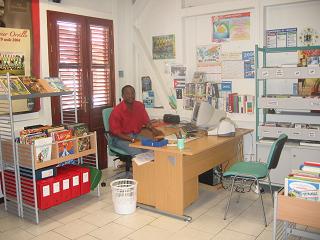 Entrons et saluons Alain Logoltat, responsable de la bibliothèque.