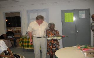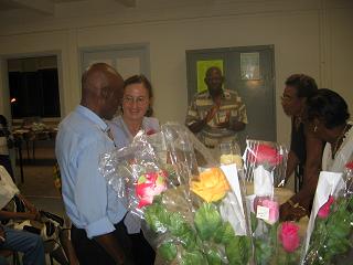 Accompagné par les chants de Josettte chacun, chacune de ces retraités recevra son bouquet et son cadeau...